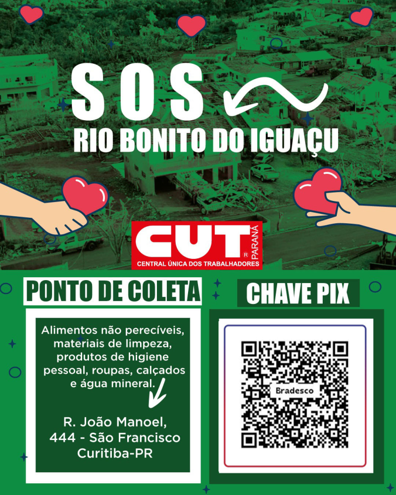 Os eventos climáticos extremos que atingiram Rio Bonito do Iguaçu deixaram um rastro de destruição e diversas famílias em situação de vulnerabilidade. A sociedade paranaense está mobilizada e a CUT Paraná não poderia ser diferente.